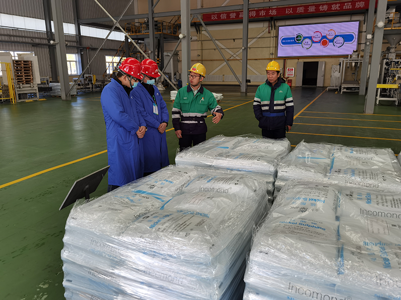 金川帶領(lǐng)我司員工來到鎳鹽公司生產(chǎn)現(xiàn)場參觀。參觀了鎳鹽工藝萃取、化學處理、產(chǎn)品包裝等標準化車間。